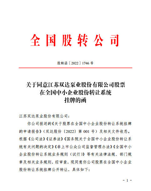江蘇雙達(dá)泵業(yè)股份有限公司(簡(jiǎn)稱公司),位于靖江市經(jīng)濟(jì)開發(fā)區(qū)新橋園區(qū)瑞江路1號(hào)。雙達(dá)公司是一家專業(yè)生產(chǎn)制造大型煉油、大型乙烯、大型PTA、大型煤化工行業(yè)用泵為主的專業(yè)化工廠,是高新技術(shù)企業(yè),3A級(jí)質(zhì)量信譽(yù)企業(yè),是一家同時(shí)生產(chǎn)石化泵、破渣機(jī)、復(fù)合材料管道的專業(yè)化制造企業(yè)。