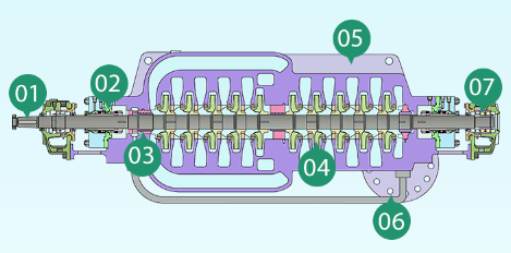 BMA型石油化工流程泵為臥式、多級、首級雙吸或單吸、水平軸向剖分、兩端支撐離心泵,它是根據(jù)API610標準要求設計,BB3泵型。其總體采用對稱葉輪布置形式軸向力自平衡,減少了平衡機構(gòu)設置的故障率。泵進出口均位于泵體下部,在維護檢修過程中無需移動管線就可以拆卸設備。